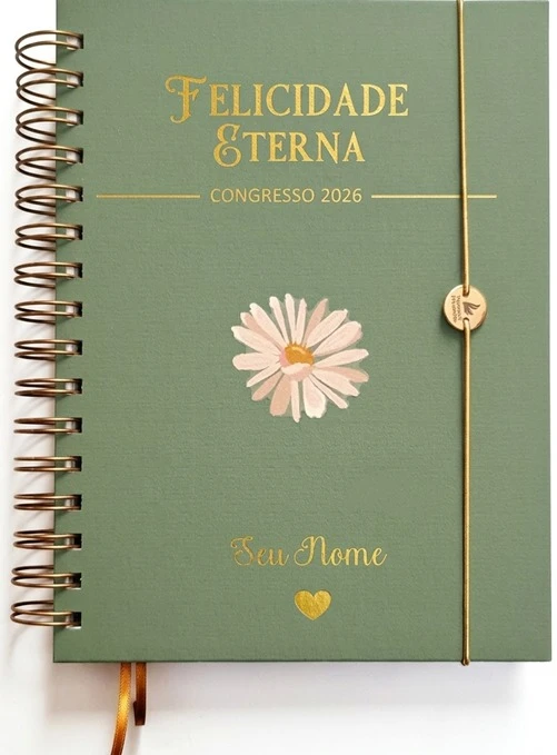 Caderno para Congresso que une estilo e praticidade, com fechamento em Wire-o, elástico e capa dura que protege suas anotações tão especiais do nosso Congresso.