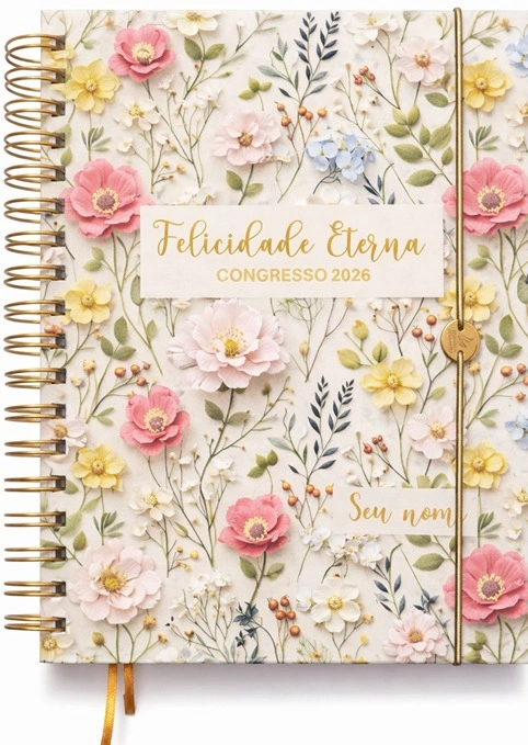Caderno para Congresso que une estilo e praticidade, com fechamento em Wire-o, elástico e capa dura que protege suas anotações tão especiais do nosso Congresso.