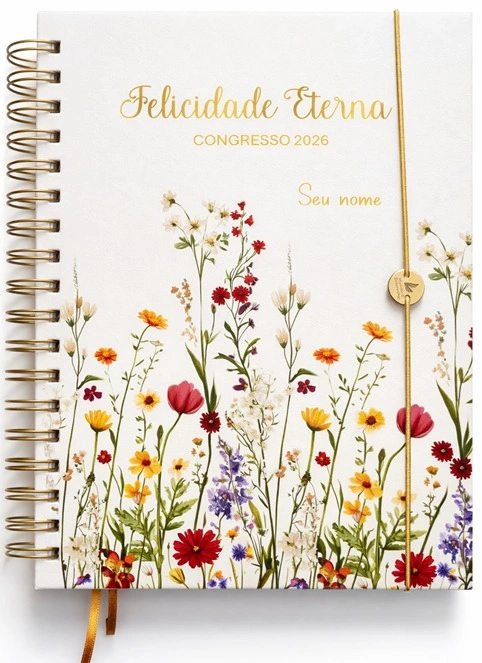 Caderno para Congresso que une estilo e praticidade, com fechamento em Wire-o, elástico e capa dura que protege suas anotações tão especiais do nosso Congresso.