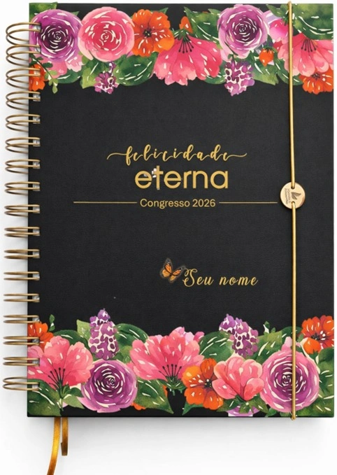 Caderno para Congresso que une estilo e praticidade, com fechamento em Wire-o, elástico e capa dura que protege suas anotações tão especiais do nosso Congresso.