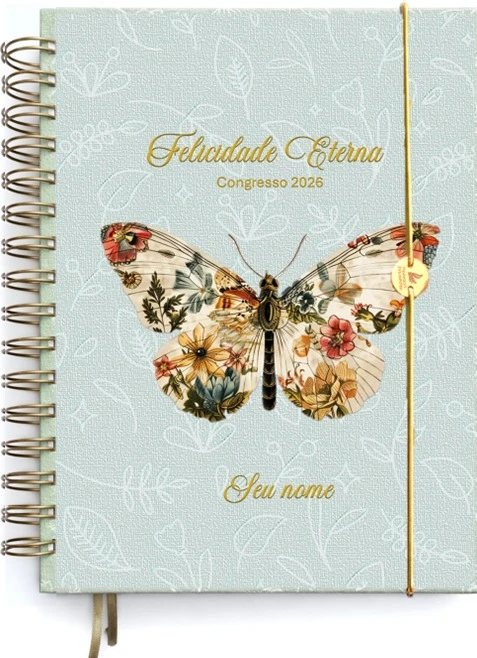Caderno para Congresso que une estilo e praticidade, com fechamento em Wire-o, elástico e capa dura que protege suas anotações tão especiais do nosso Congresso.