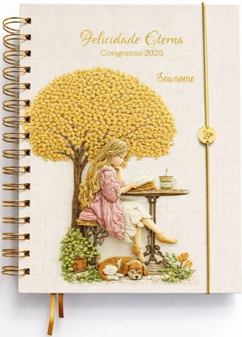 Caderno para Congresso que une estilo e praticidade, com fechamento em Wire-o, elástico e capa dura que protege suas anotações tão especiais do nosso Congresso.