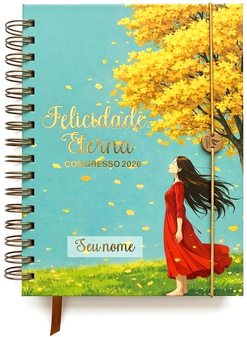 Caderno para Congresso que une estilo e praticidade, com fechamento em Wire-o, elástico e capa dura que protege suas anotações tão especiais do nosso Congresso.