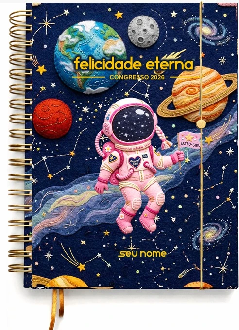 Caderno para Congresso que une estilo e praticidade, com fechamento em Wire-o, elástico e capa dura que protege suas anotações tão especiais do nosso Congresso.