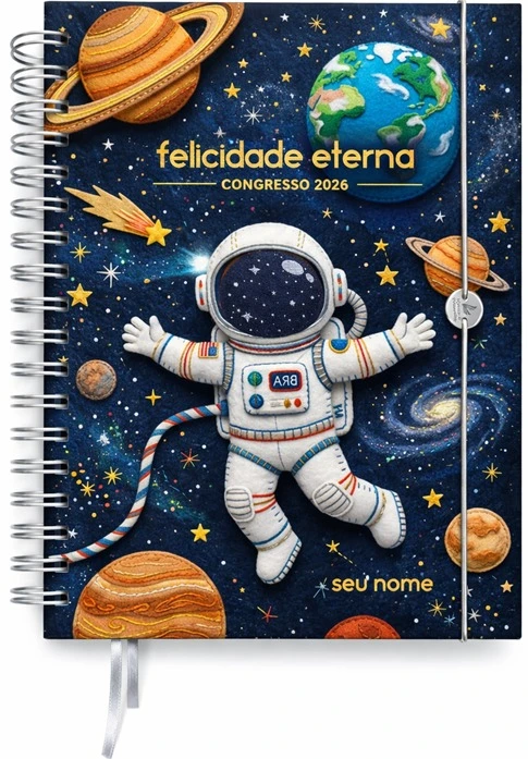 Caderno para Congresso que une estilo e praticidade, com fechamento em Wire-o, elástico e capa dura que protege suas anotações tão especiais do nosso Congresso.