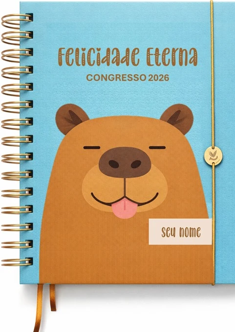 Caderno para Congresso que une estilo e praticidade, com fechamento em Wire-o, elástico e capa dura que protege suas anotações tão especiais do nosso Congresso.